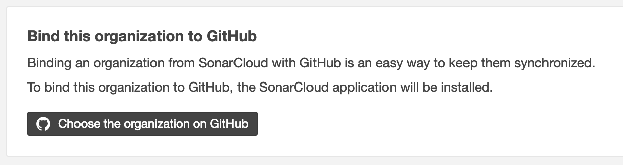 Then, in order to bind a GitHub organization to SonarCloud, the GitHub account you’re using must be an admin of the GitHub organization.