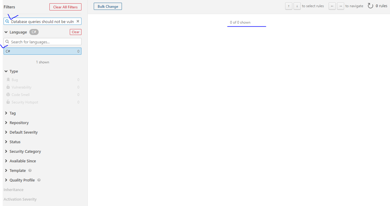 And I also searched on my sonarqube web, but I can’t find the rule.