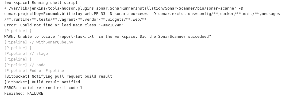 This doesn’t seem related to the error message you’re getting, but one thing I notice is that you have spaces in your command line between -D and the key/value pairs. E.G. instead of -D sonar.projectKey=Ecosmod.btifixloy-web.PR-33 it should be -Dsonar.projectKey=Ecosmod.btifixloy-web.PR-33.