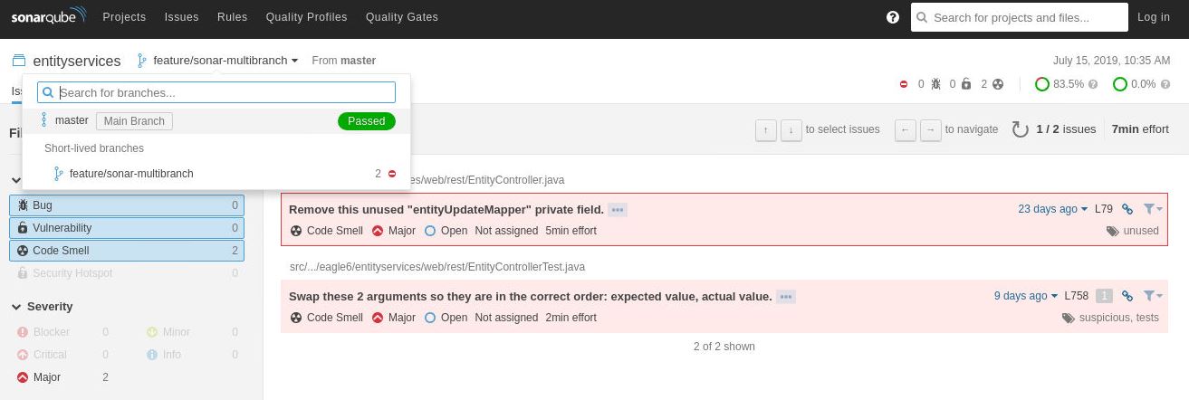In the past we didnât use sonar.branch.name on jenkins, and any branch scan was published under the name master under the project, later on as we upgraded to developer edition for branch analysis we introduced the sonar.branch.name parameter to jenkins and the scans were published as short living branches and thatâs the time this issue was introduced.