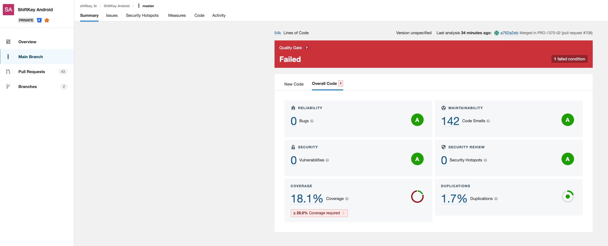 Now youâre guaranteed that all new commits will have higher coverage than the current overall coverage. This is why we put so much emphasis on Clean as You Code. It doesnât enforce unreasonable demands to clean up legacy code. And at the same time, it gives you an enforcement mechanism to make sure all new changes are of the quality you want.