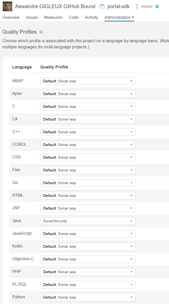 Here you need to be sure that “Sonar way” is selected for the Python row.