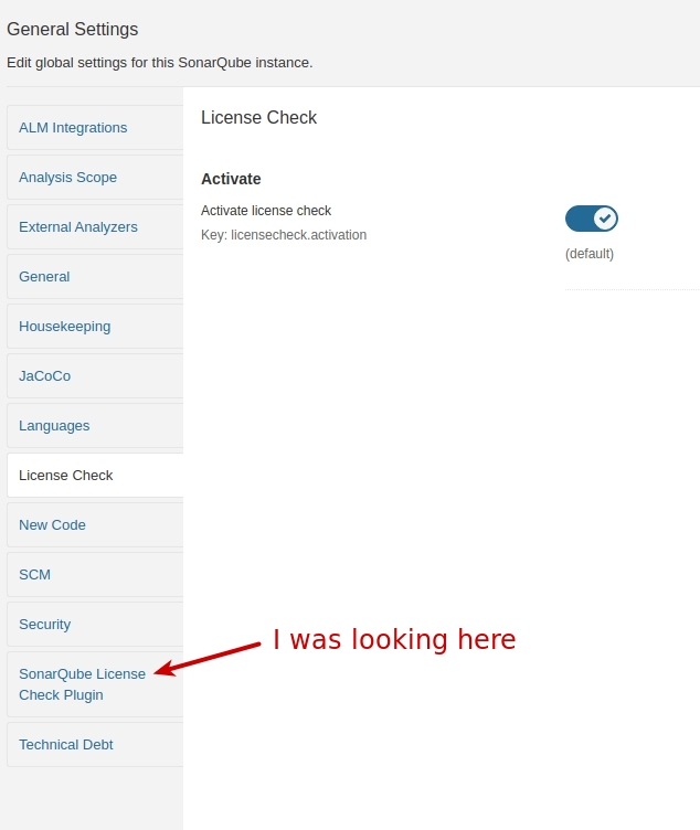 I have to ask about the āSonarQube License Check Pluginā configuration, particularly when your docs say āplease do not useā it.