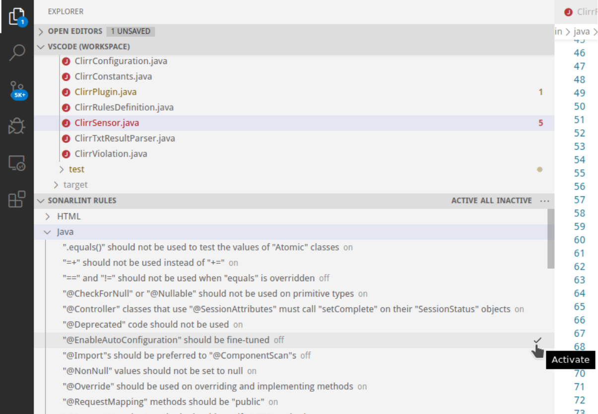 - If you are already using SonarQube or SonarCloud for your Java projects, then you can connect SonarLint to it (a.k.a. connected mode) to leverage the same rules and settings already applied on the project