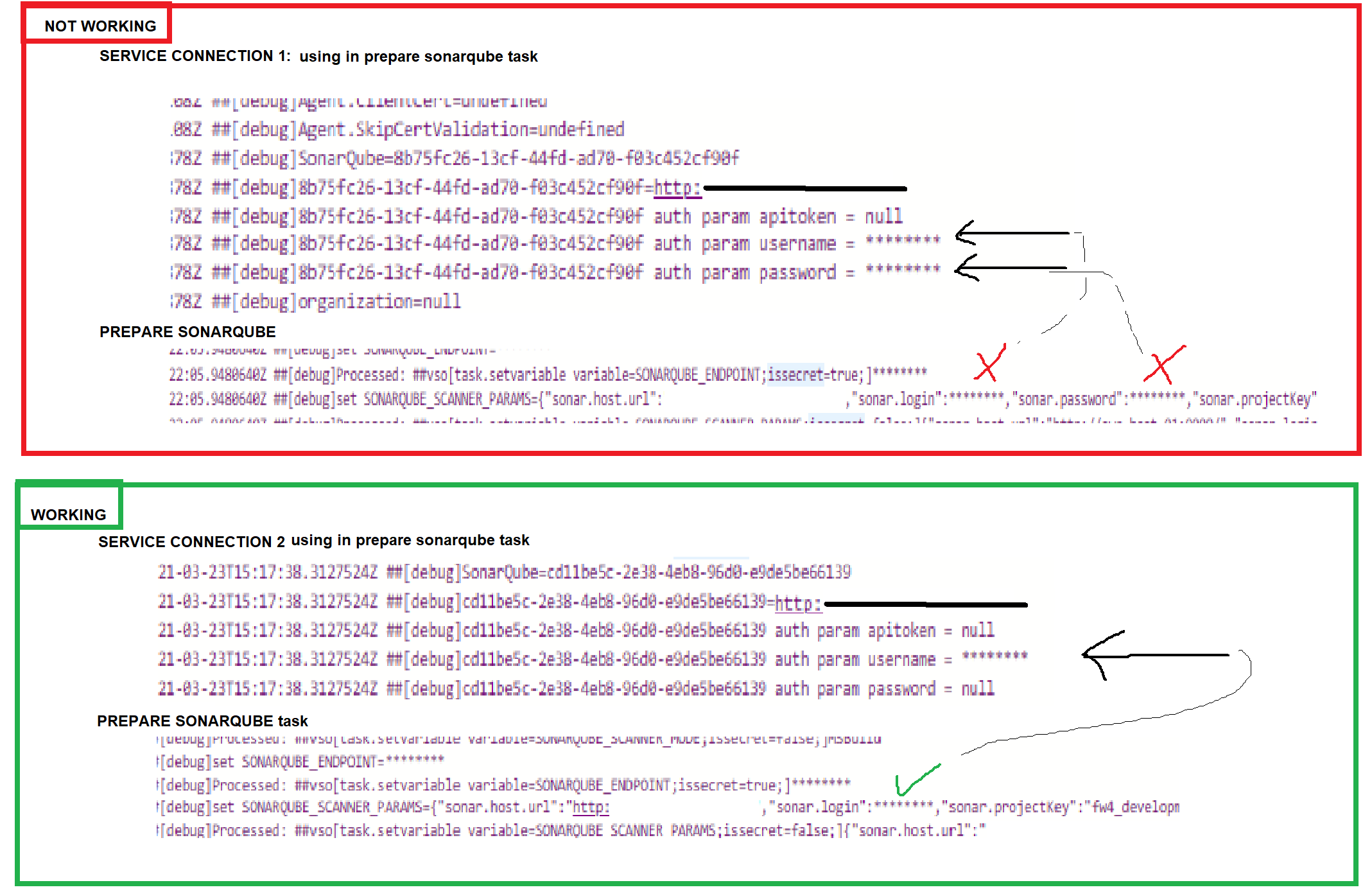 The problem is, the task to prepare sonarqube, one serviceconnection assume (don’t know why) user and passwor, and the other assume only the token.