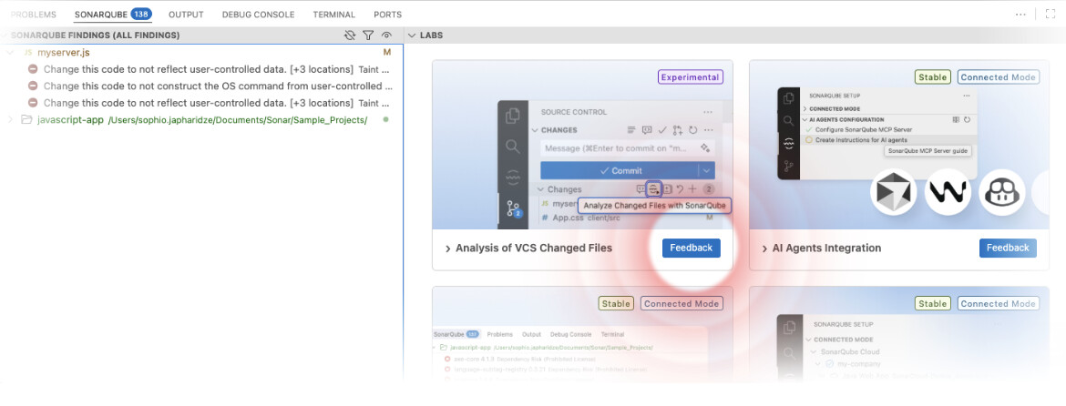 This is a true laboratory, meaning things might break, and that’s okay! It is your opportunity to test the boundaries of what SonarQube for IDE can do and help us decide which experiments graduate to full production features.