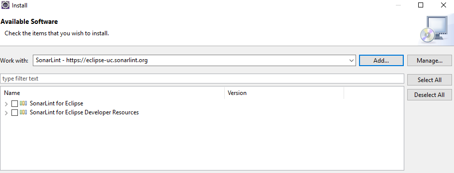 <repository name=""SonarLint for Eclipse Update Site"" type="org.eclipse.equinox.internal.p2.metadata.repository.CompositeMetadataRepository" version="1.0.0">