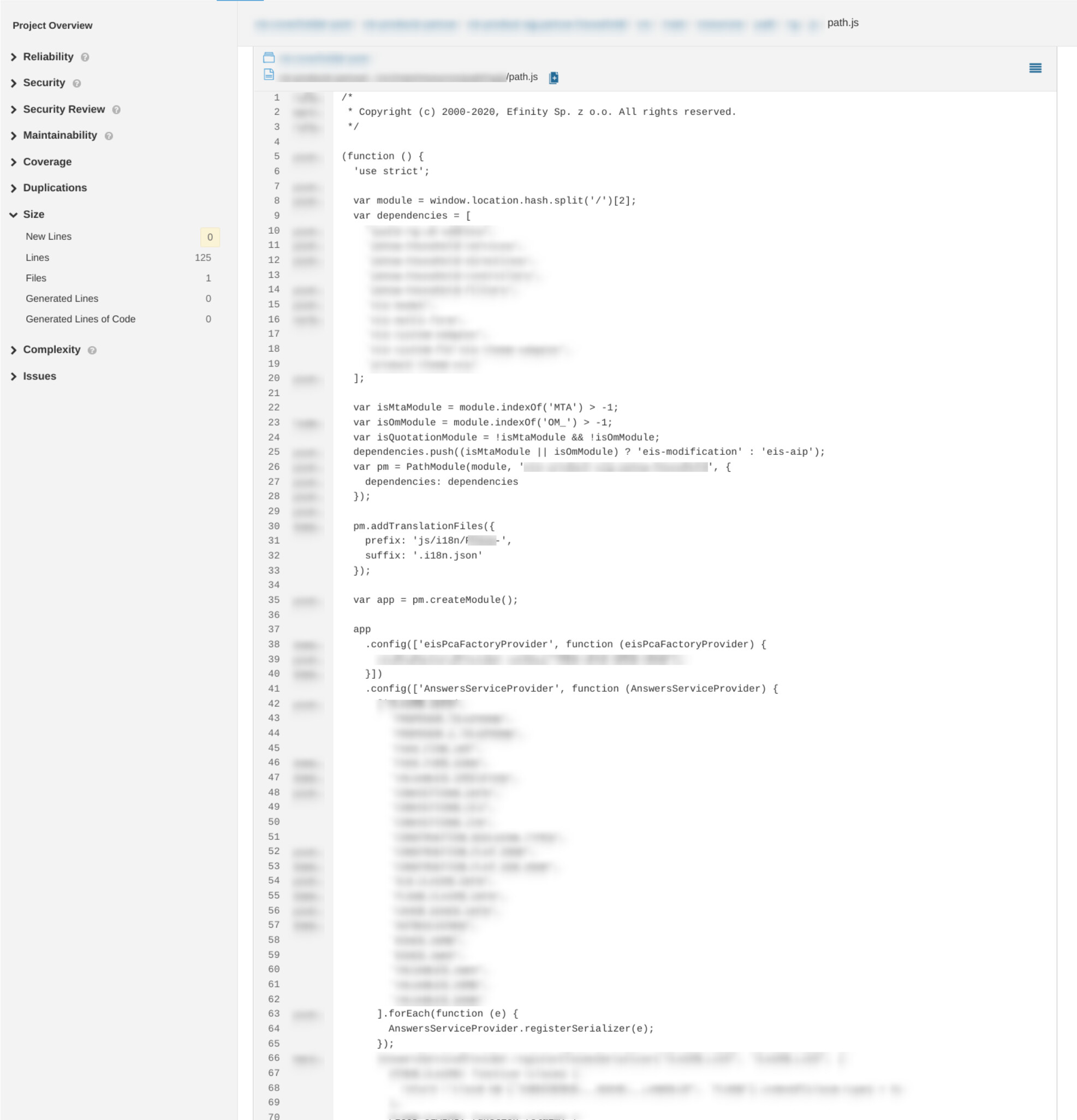 We’ve got thousands of similar files (example folder is one of our system plugin - we have tens of such plugins), that have zero LoC measures - I think sonar does it for all javascript files in those plugins.